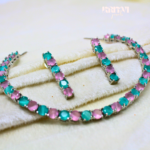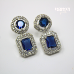 Emerald Blue Halo Drop Earrings Set in Silver Finish
